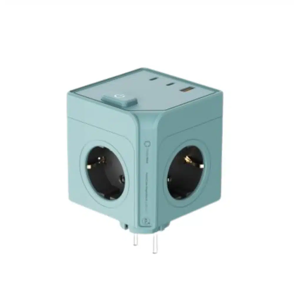 Deze rewirable stekkerdoos biedt maar liefst 5 stopcontacten, handig verdeeld over een kubusvormig ontwerp. Zo kun je meerdere apparaten tegelijkertijd opladen, zonder dat grote stekkers elkaar blokkeren.