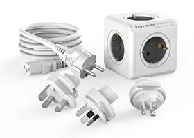 Met de meegeleverde internationale reispluggen (Type B, G en I) gebruik je deze rewirable stekkerdoos probleemloos in onder andere de Verenigde Staten, het Verenigd Koninkrijk, Australië en China. Dankzij het innovatieve kubusontwerp overlappen stekkers elkaar niet, waardoor je meerdere apparaten tegelijk kunt aansluiten, waar je ook bent.