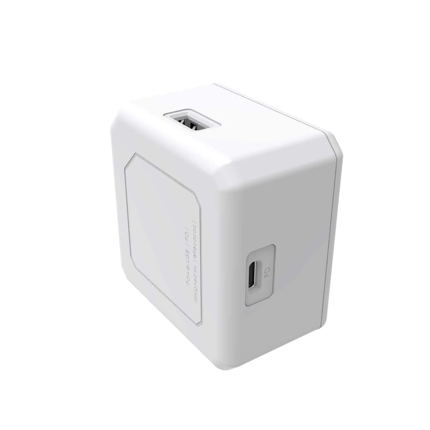 Het slimme en ruimtebesparende kubusontwerp voorkomt rommelige kabels en maakt deze lader perfect voor thuis, op kantoor en onderweg.