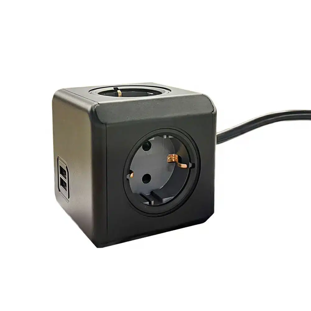 PowerCube Exclusief Zwart Stekkerdoos – Stopcontacten + 2 USB-A, Type F & E